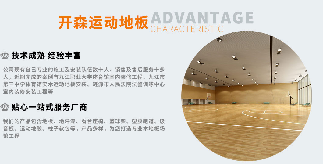 九江開森地板有限公司是集運(yùn)動(dòng)木地板生產(chǎn)、安裝與銷售一體的廠家,專業(yè)化的技術(shù)隊(duì)伍,國際先進(jìn)的施工設(shè)備,我們的管理層擁有多年體育場館建造經(jīng)驗(yàn),在業(yè)界獲得良好聲譽(yù)及甲方的好評(píng)。